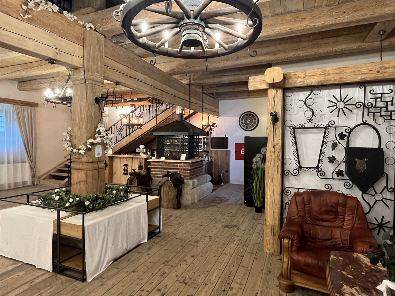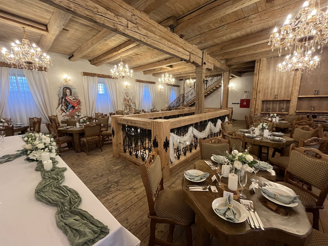 Oplývá intimní atmosférou, jíž dominuje otevřený krb a monumentální nástěnná malba, znázorňující věčný zápas dobra a zla nad panoramatem Českého středohoří. Tento prostor je jako stvořený pro komorní svatební hostiny, rodinná setkání či slavnostní chvíle