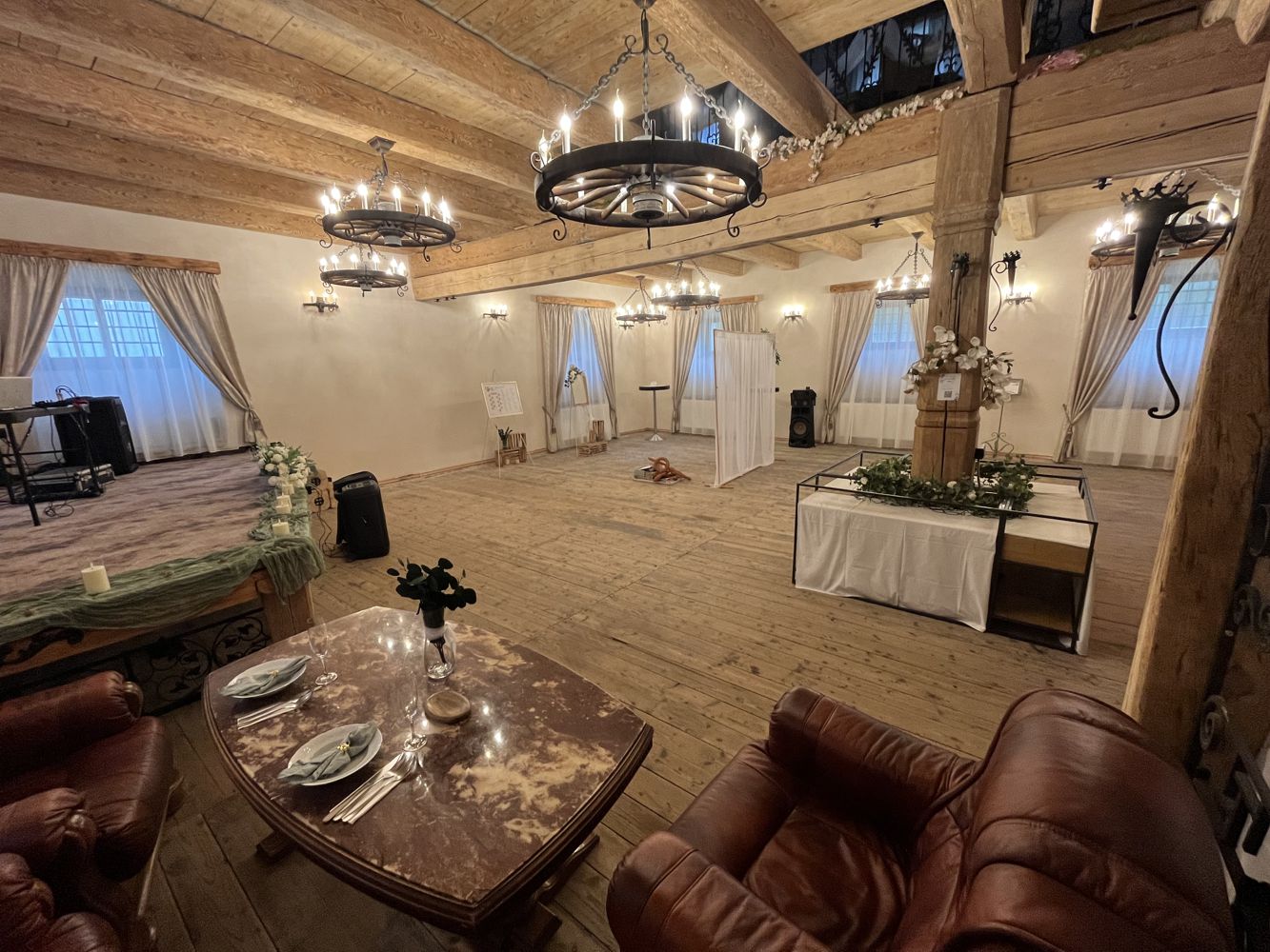 v úzkém kruhu blízkých. Nechybí ani taneční parket, jenž zve k prvním novomanželským krokům či večernímu tanci při svitu svící. Kapacita sálu činí 25 hostů.