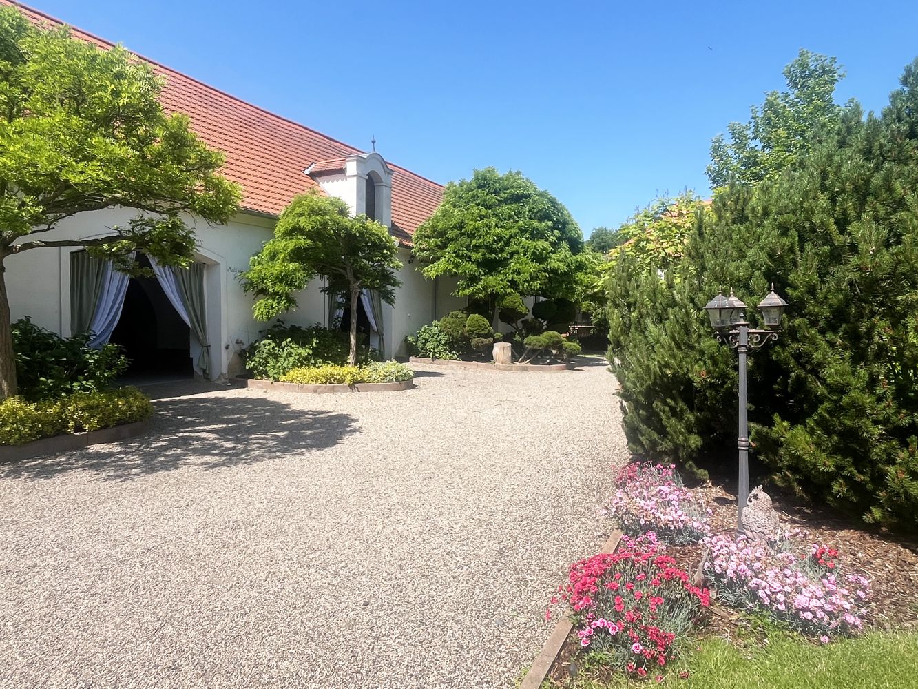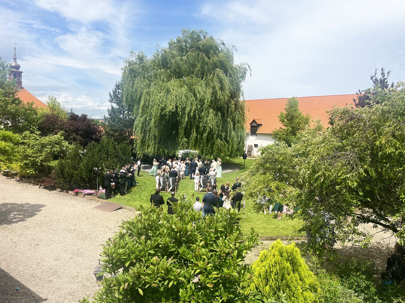 S nasvícenou majestátní vrbou a romantickou studnou je pečlivě udržované, po setmění osvětlené, malebné místo plné elegance a kouzla. Nabízí pohádkovou atmosféru pro svatební obřad pod širým nebem, nezapomenutelné focení i klidné chvíle s vašimi nejbližšími. K dispozici je 45 kusů polohovatelných venkovních křesílek se stylovými podsedáky.